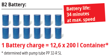 B2 Pump Material Construction Options Suited to low viscosity non-flammable liquids with the following properties; Density up to 1.6 kg/dm³ Maximum Viscosity up to 400 mPas Maximum