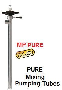 Some fluids take offence at being kept on hold. They will simply sediment. We are referring to numerous emulsions, dispersions and suspensions used in industrial and trade environments MP pump tubes will make sure thin bodied neutral, aggressive and corrosive liquids in drums or containers are thoroughly mixed before decanting. Desired Turbulence; The special flow conditions in the container generated by the pump tube for mixing and pumping thoroughly remix and homogenize sedimented media - even in remote corners of the container bottom. In a flash, you will homogenized mix is ready for further processing All the functions in one go; The construction comprising an immersion tube and a locking |